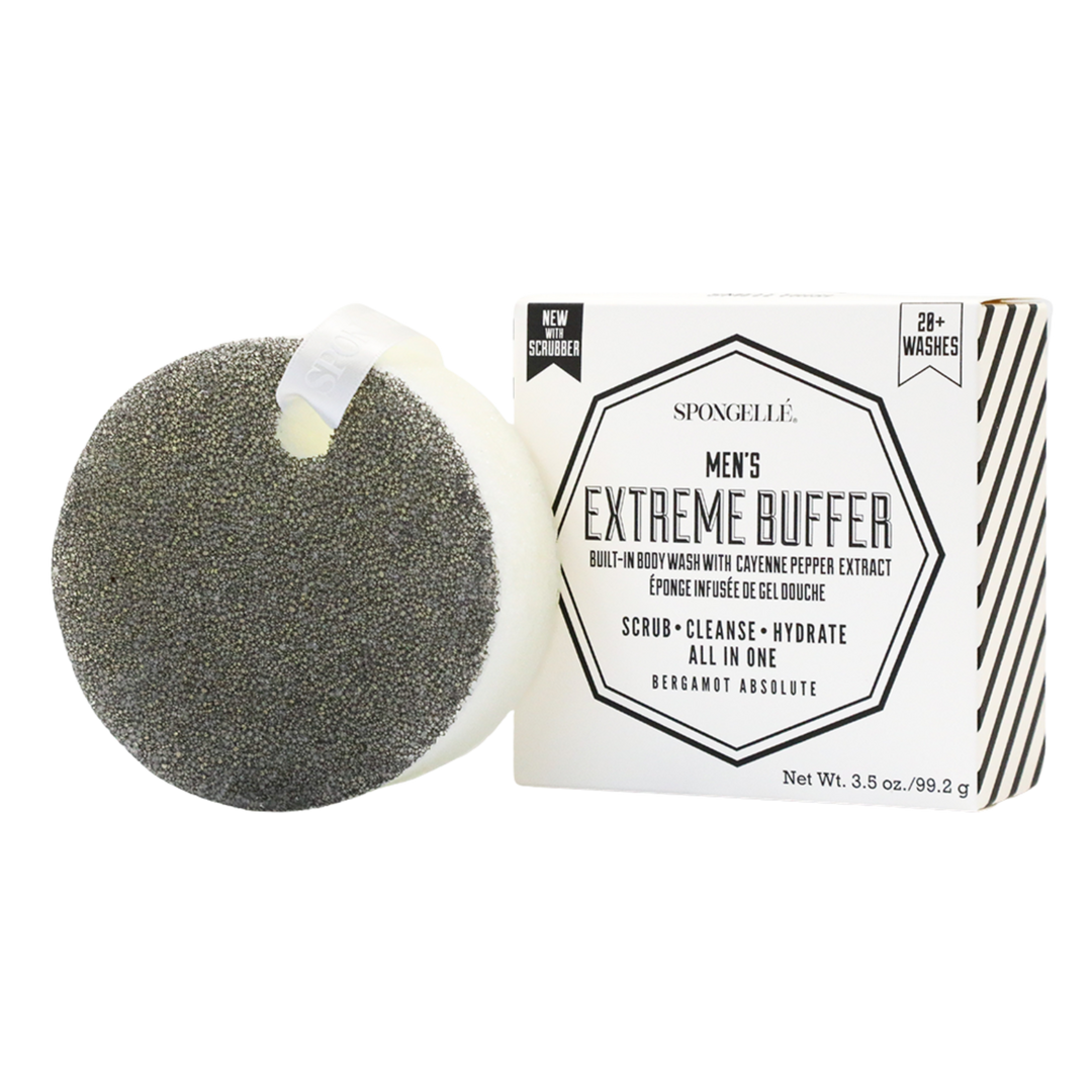 Introducing our enhanced Men's Body Buffers, now featuring an innovative dual-sided black scrubber for an invigorating and effective exfoliation experience. Treat his skin to our Men’s Extreme Buffer in seductive Bergamot Absolute with tart orange, exotic cedarwood, and warm amber.