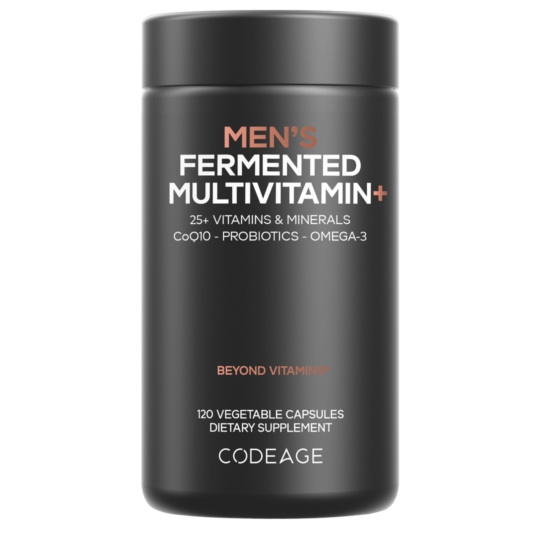 Codeage Men’s Daily Multivitamin+ is formulated for men and includes a blend of essential vitamins, minerals, and nutrients, along with fermented herbs, probiotics, and a digestive enzyme blend.