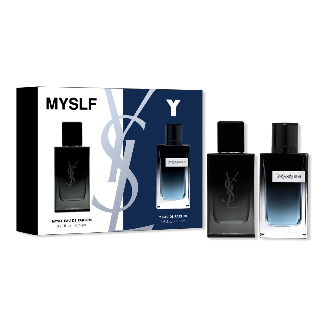 Discover your next signature cologne with this Yves Saint Laurent duo: MYSLF and Y Eau de Parfum in deluxe trial sizes. MYSLF unfolds with fresh, woody accords blended with orange blossom, while Y combines woody notes with sage and geranium.