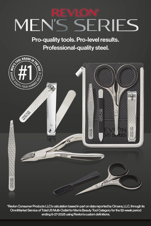 - Official Answer By Revlon Cosmetics - BEThank you for your interest in our products. The Men's Series Grooming Kit is designed to meet the specific challenges of male grooming. The Safety Scissors offer a blunt tip safe for trimming ear and nose hair. If we can be of further service, please do not hesitate to contact us toll-free at 1-800-473-8566 for Revlon.Was this answer helpful to you