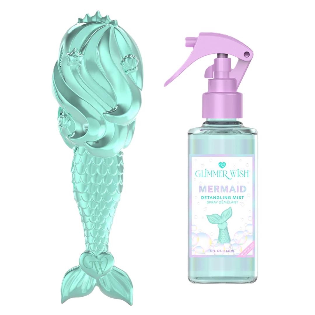 Get mermaid worthy, tangle-free hair! This kit includes the Glimmer Wish Detangling Brush with flexible bristles and nourishing Detangling Mist with island inspired coconut & macadamia oils to soften, detangle, tame frizz, and leave hair shiny and touchable.