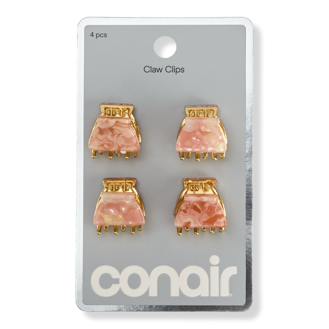 Small claw clips with big style energy from Conair. Pink metal and acrylic mini clips keep your look neat and pulled together, from quick pull-backs to a special finish.