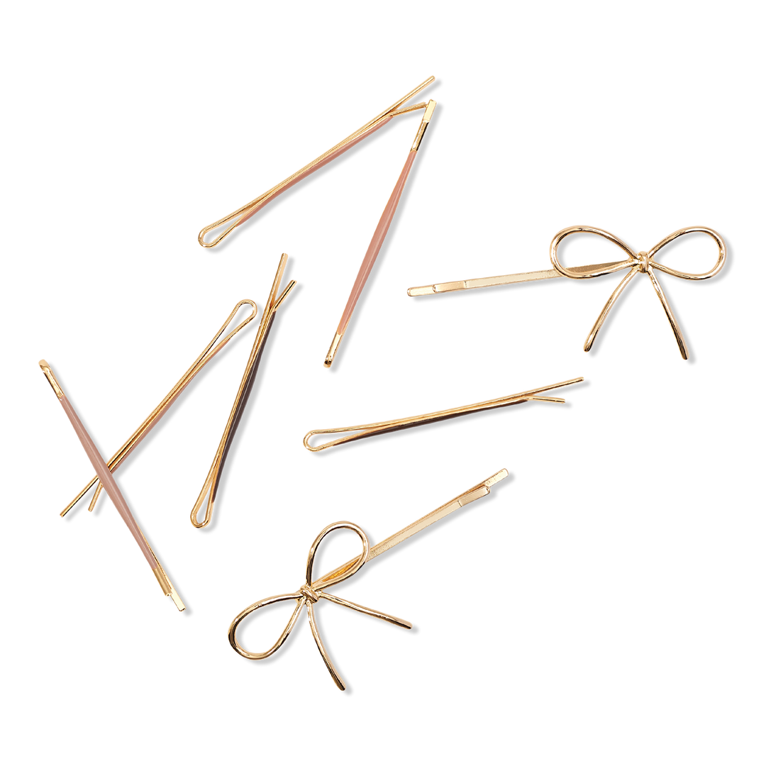 - Comes with 6 metal, enamel-coated bobby pins in assorted rose-toned hues, plus 2 petite bow bobby pins in a solid gold color