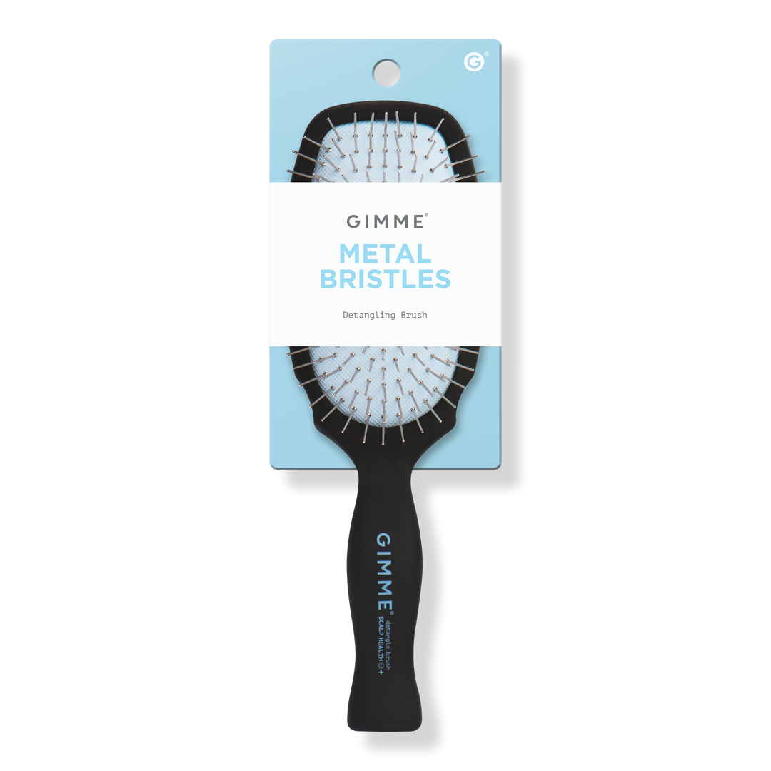 Designed for medium hair types, Gimme Beauty's Metal Flex Brush removes scalp buildup & distributes your hair's natural oils for strong, healthy strands. No pulling or tugging with a comfy handle and a flexible cushion, this 100% stainless steel-bristled brush smoothes out tough tangles with ease.