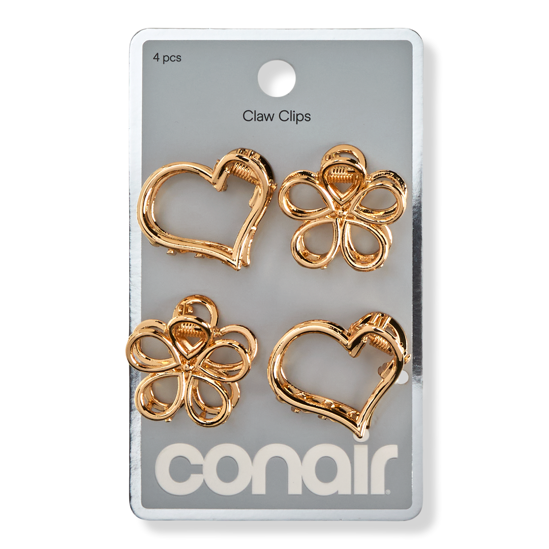 Add shine to styled looks with Conair metal flower and heart claw clips. Perfect for all hair types and textures, these mini clips bring a glamorous finish to pulled-back styles and special-occasion hair.