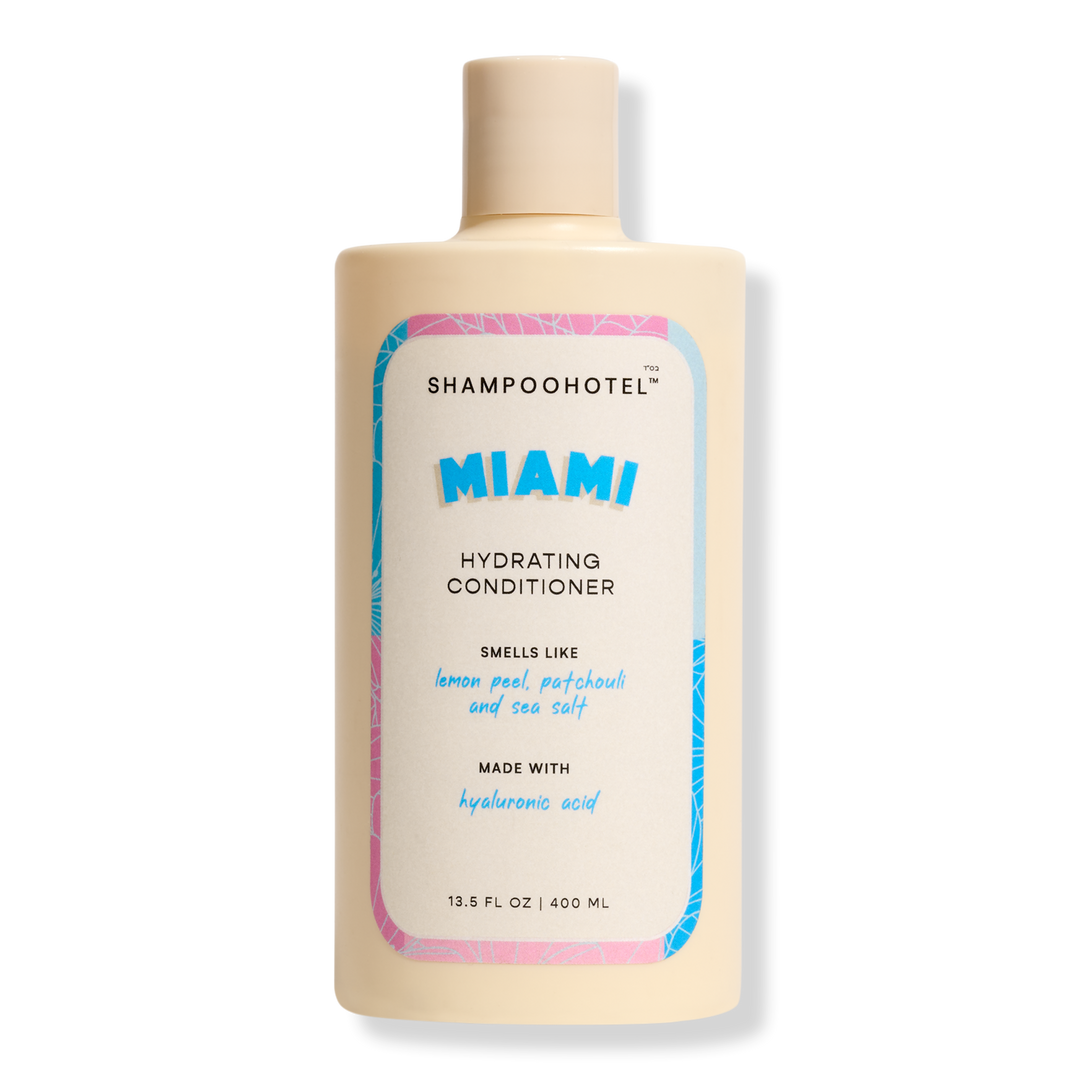SHAMPOOHOTEL Miami Hydrating Conditioner is your desination for hydration! Hyaluronic acid-powered formula drenches hair in moisture, promoting a softer feel and frizz-free finish (even in high humidity). Notes of zesty lemon peel, earthy patchouli, and sea salt deliver a refreshing, beachy scent.