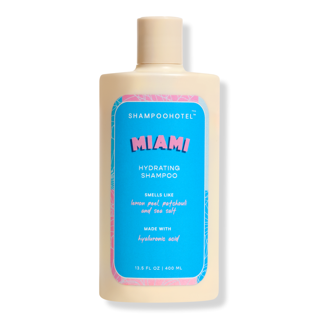 SHAMPOOHOTEL Miami Hydrating Shampoo is ultra hydrating formula that drenches hair in moisture, promoting a softer feel and frizz-free finish (even in high humidity). Notes of zesty lemon peel, earthy patchouli, and sea salt deliver a refreshing, beachy scent.