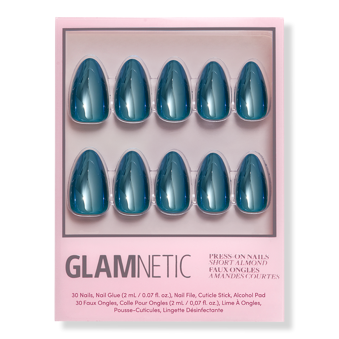 Deep, dramatic, and incredibly chic, Glamnetic's Midnight Teal Press-On Nail Set captures Mediterranean waters in a rich dark teal in an elongating short almond silhouette. Finished with a high-shine reflective glaze, you’ll get a durable, salon-quality mani in 10 minutes.