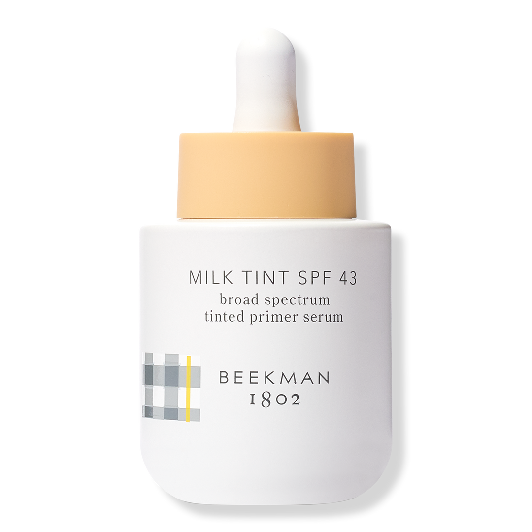 Beekman 1802's Milk Tint Tinted Primer Serum protects with SPF 43 and gives skin a pore-blurring tint that flexes to adapt to every skin tone in a range of shades.
