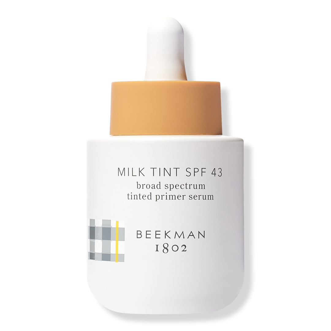 Beekman 1802's Milk Tint Tinted Primer Serum protects with SPF 43 and gives skin a pore-blurring tint that flexes to adapt to every skin tone in a range of shades.