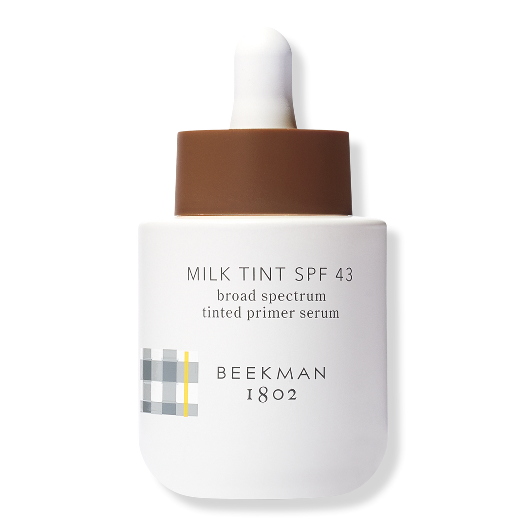 Beekman 1802's Milk Tint Tinted Primer Serum protects with SPF 43 and gives skin a pore-blurring tint that flexes to adapt to every skin tone in a range of shades.