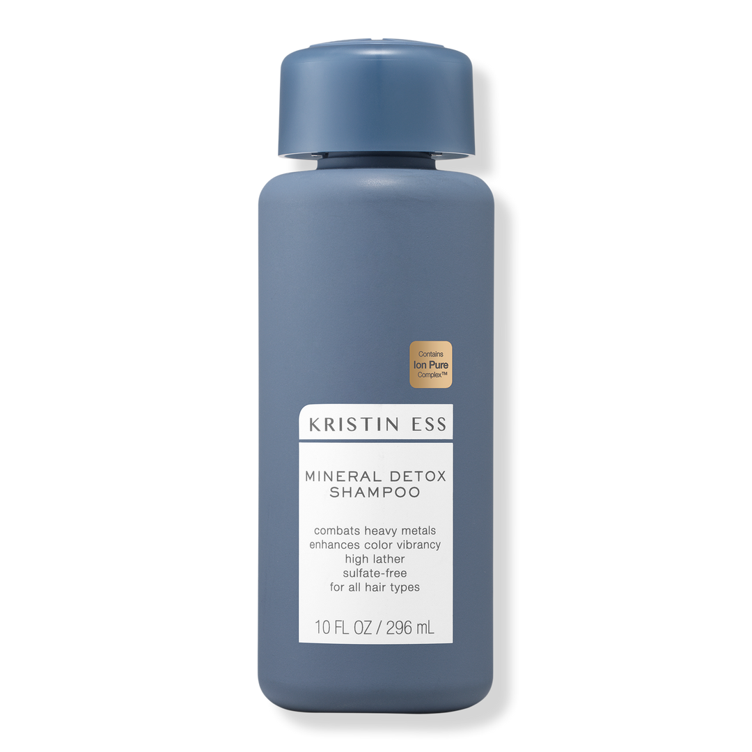 The Kristin Ess Hair Mineral Detox Shampoo with Ion Pure Complex gently removes build-up and heavy metals for shinier, more vibrant, and weightless hair.