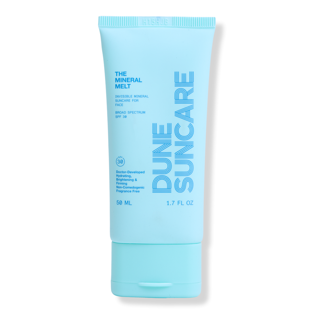 The Mineral Melt Broad Spectrum SPF 30 by Dune Suncare. Doctor-developed sheer mineral SPF protection, packed with clinically proven skincare benefits, for every mug, every day. Be smart, look good. Cover your assets.