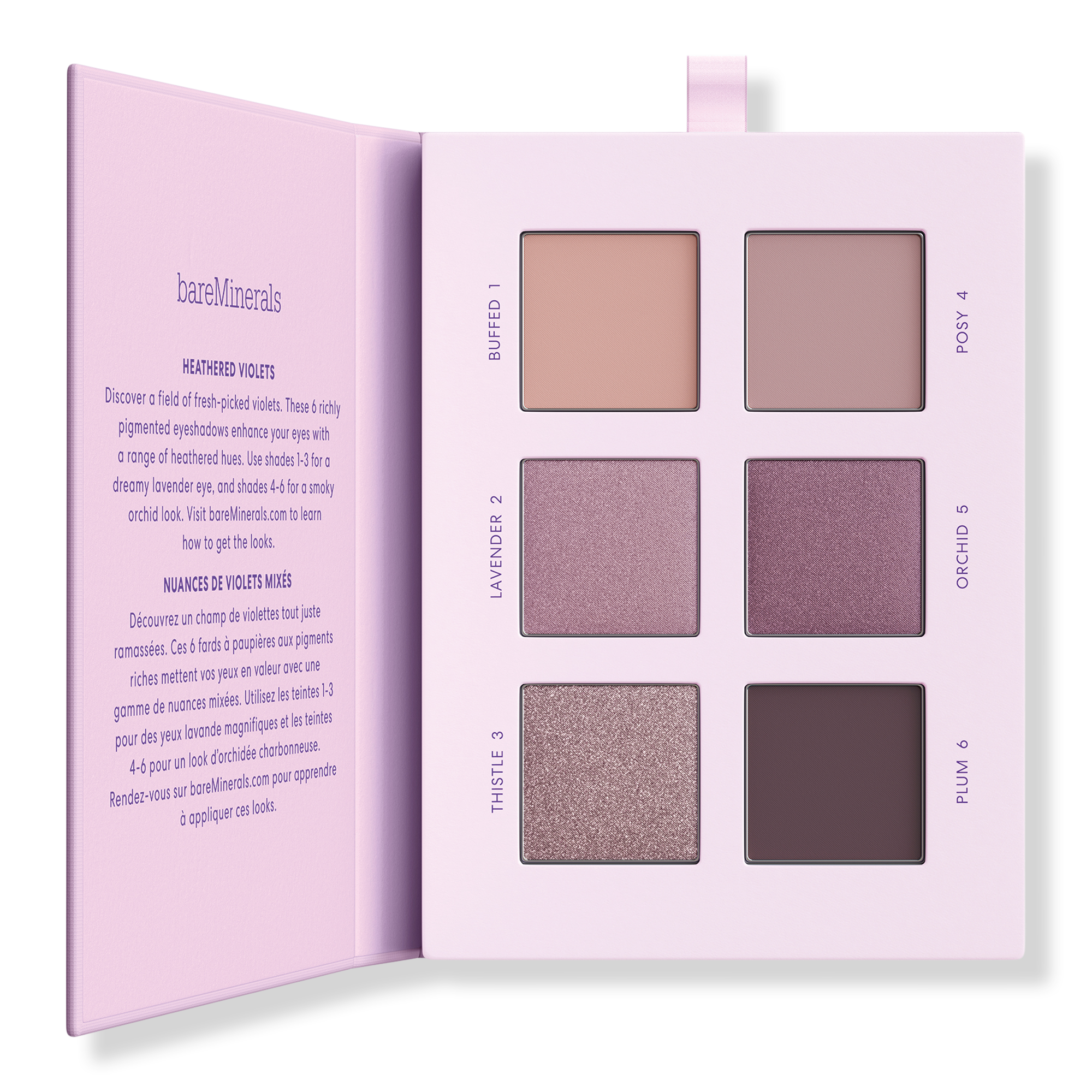 - 6 cool mauve, lilac and violet shades in matte, satin and metallic finishes