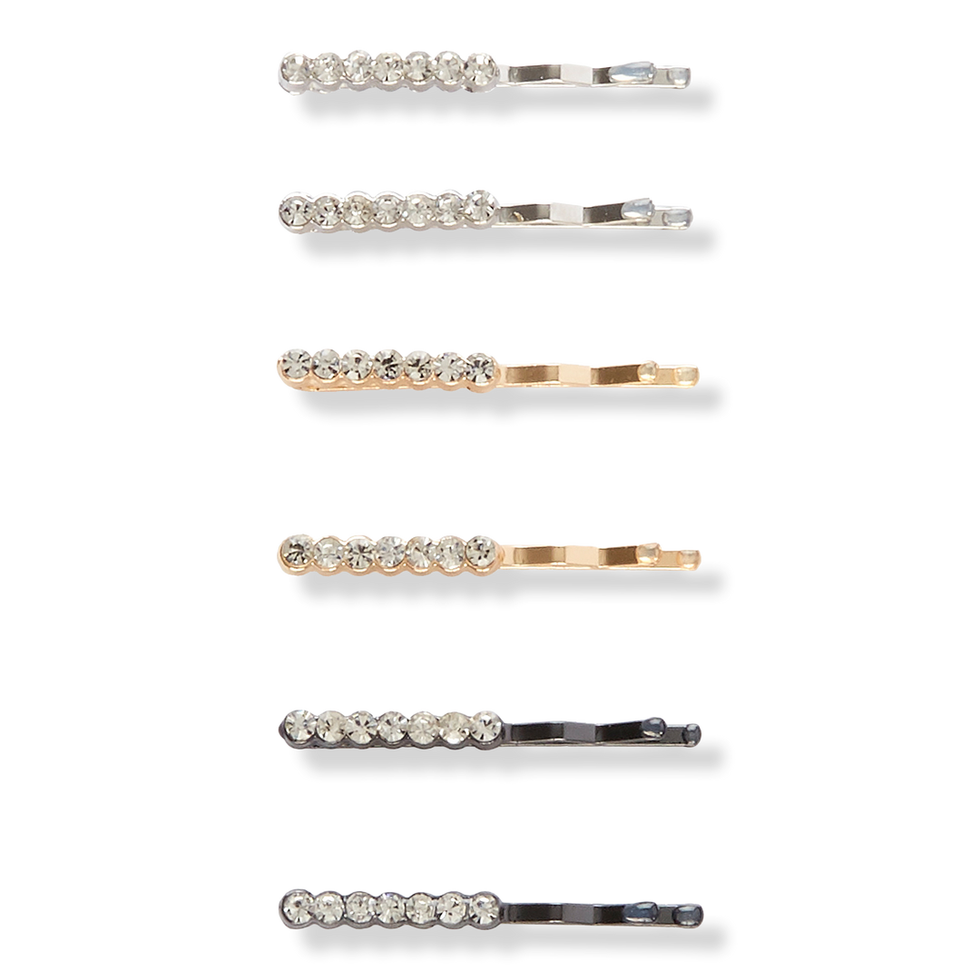 Style hair with these stackable Mini Bobby Pins with Rhinestones from Scünci. Keep your look securely in place with strong, sparkling pins that's stay put.