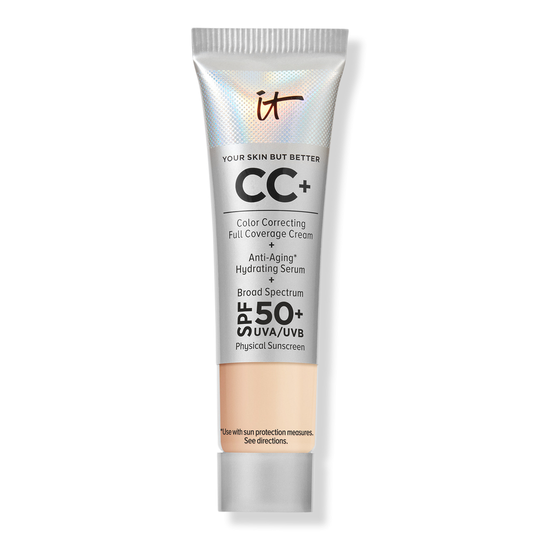 CC+ Cream with SPF 50+ is your full coverage color correcting foundation with anti-aging serum infused with hyaluronic acid, vitamin E, and broad-spectrum sunscreen with no white cast. This color correcting cream hydrates while diffusing the appearance of skin imperfections.