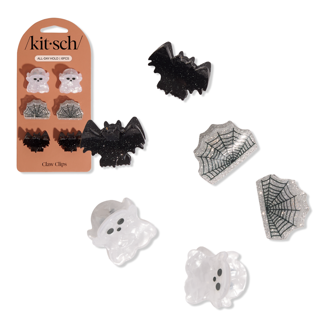 Give your hair a spooky twist with the Kitsch Recycled Plastic Mini Claw Clips in Halloween-themed designs. With ghosts, spiderwebs, and bats, this set brings just the right amount of spooky-cute to any style.