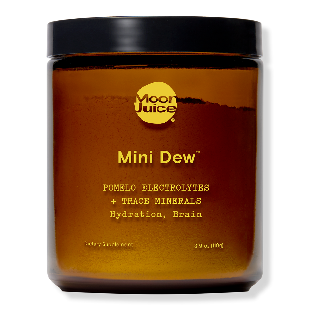 Quench your brain. Moon Juice's Mini Dew Electrolyte + Mineral Supplement is 2 in 1: microplastic-free pink salt electrolytes + minerals for hydration and brain function.
