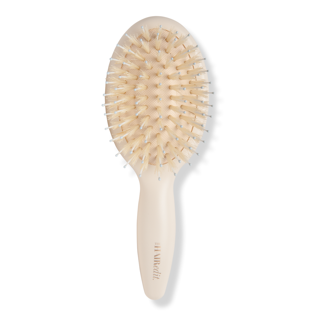 Perfect for on-the-go, The Hair Edit's travel-sized Mini Finish & Shine Boar Bristle Brush boosts shine and tames flyaways.