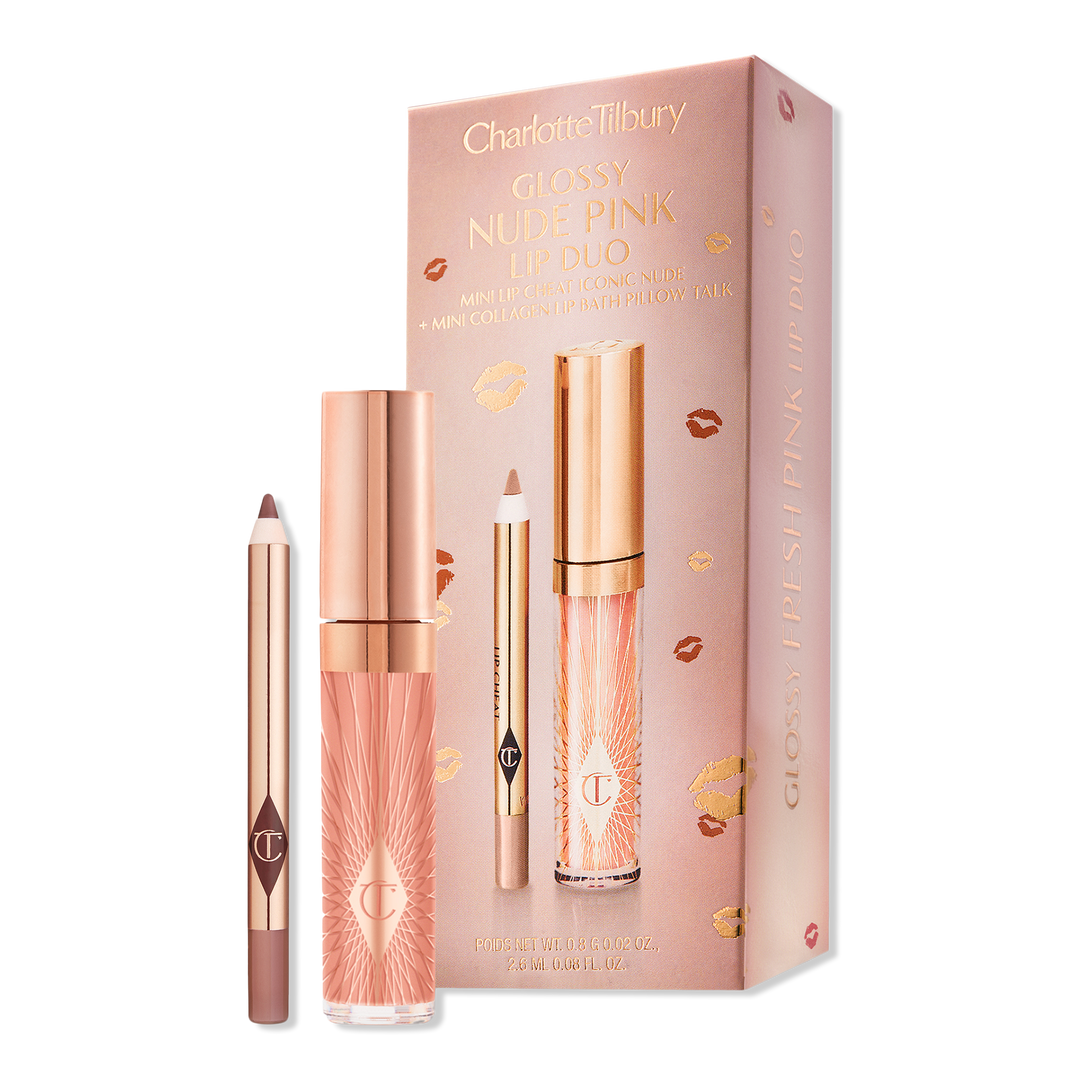 Charlotte Tilbury's Mini Glossy Pink Lip Gloss + Lip Liner Set includes an iconic, mini Lip Cheat Lip Liner and mini Collagen Lip Bath Gloss - the perfect pair for contoured, fuller-looking lips with a high-shine finish.