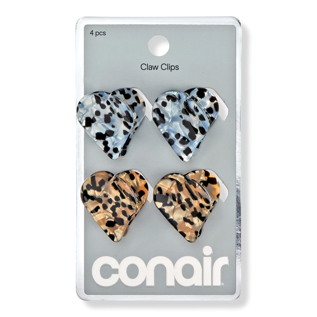 Conair mini tort heart claw clips add a playful touch while helping to keep styles in place for fine to medium hair. This 4-piece set features silver and tan clips with black speckles, perfect for mixing and matching to create a unique look.