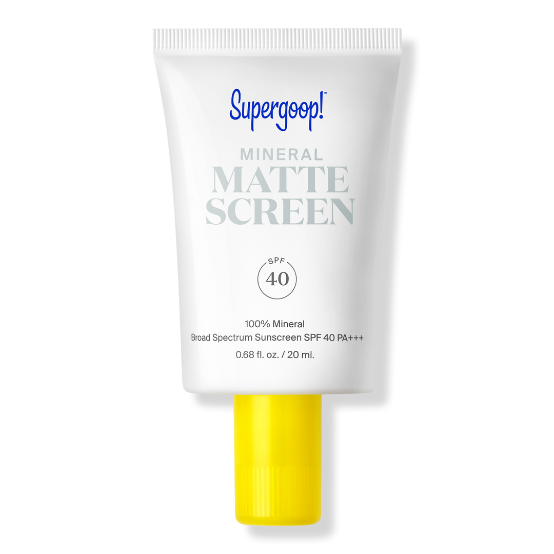 Supergoop! Mineral Mattescreen SPF 40 is a blendable, mineral sunscreen with a mattifying finish that controls shine, blurs pores, and primes for makeup.