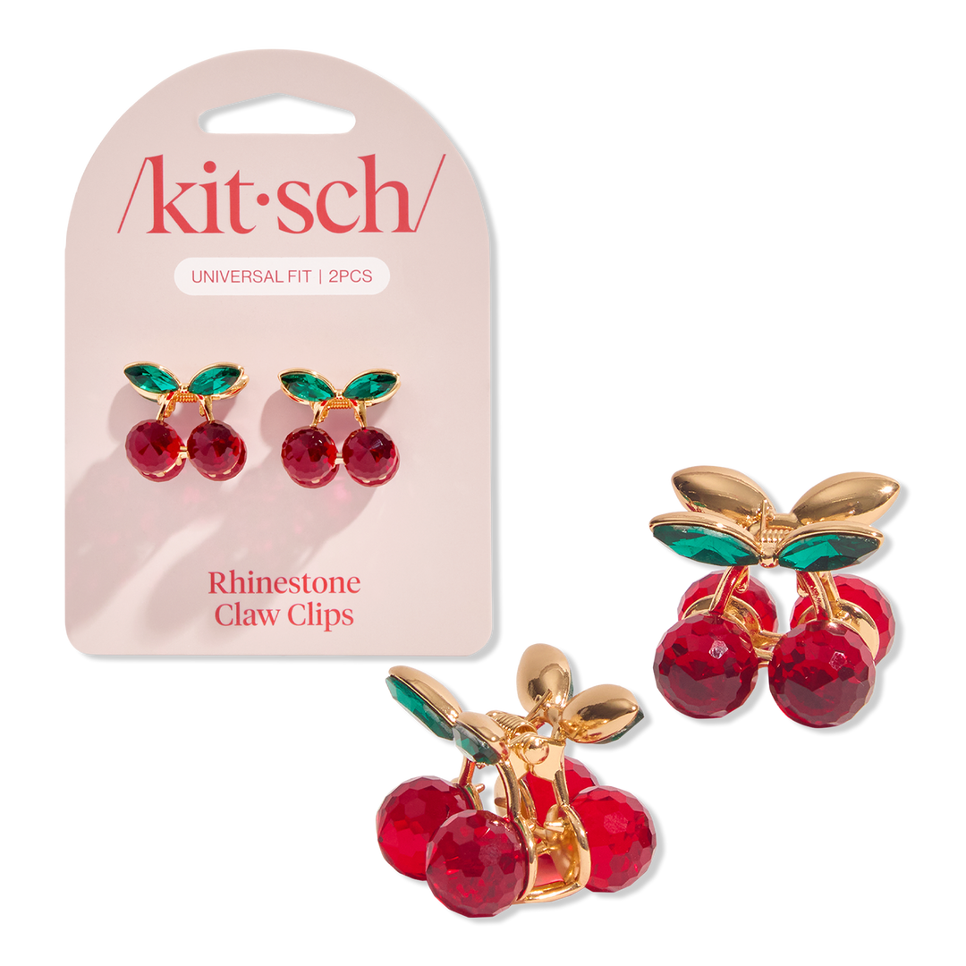 Sparkle on the go with Kitsch Mini Rhinestone Claw Clips in a darling cherry design. Perfect for quick, glamorous style fixes with a touch of shimmer, they’re the perfect way to elevate your style.