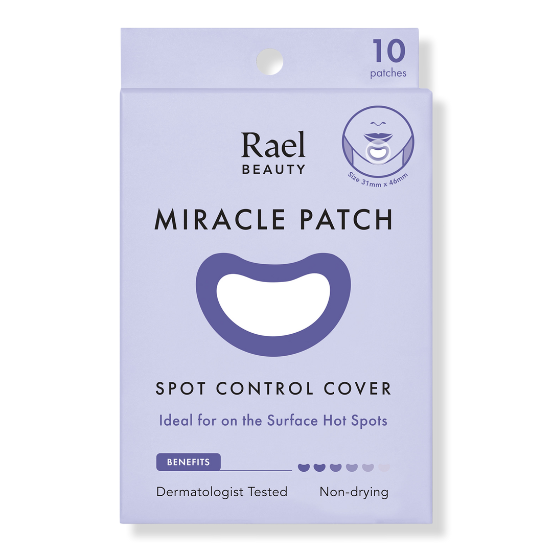 Rael's Miracle Patch Spot Control Cover tackle all your acne hot spots. Hydrocolloid patches with an extra-large, contour shape ensure a secure fit over your cheeks, nose, and chin.