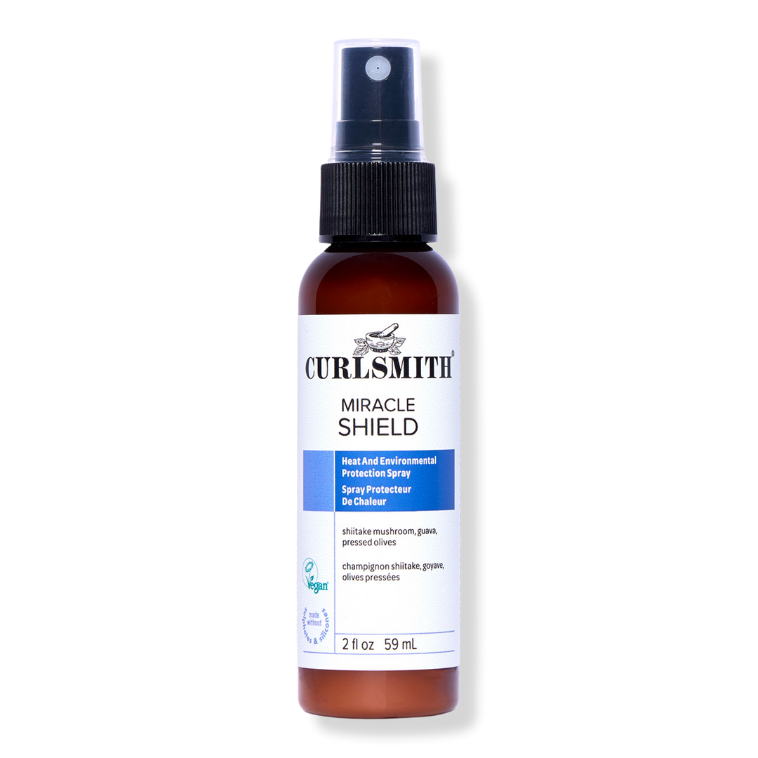 Curlsmith Miracle Shield is a lightweight mist that helps protect against the hair’s harshest aggressors including heat.