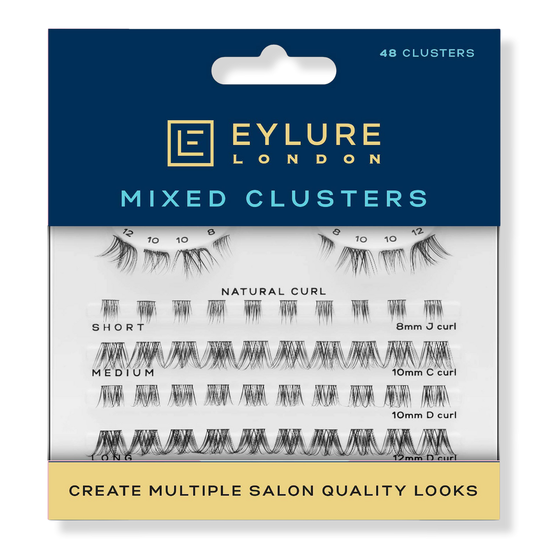Create your own bespoke salon lash look at home with Eylure’s Mixed Eyelash Cluster Kit with 4 Cluster Styles! Created with lash technicians, this kit combines a mix of Salon Curls & different length clusters, giving you the tools to create your own lash map.