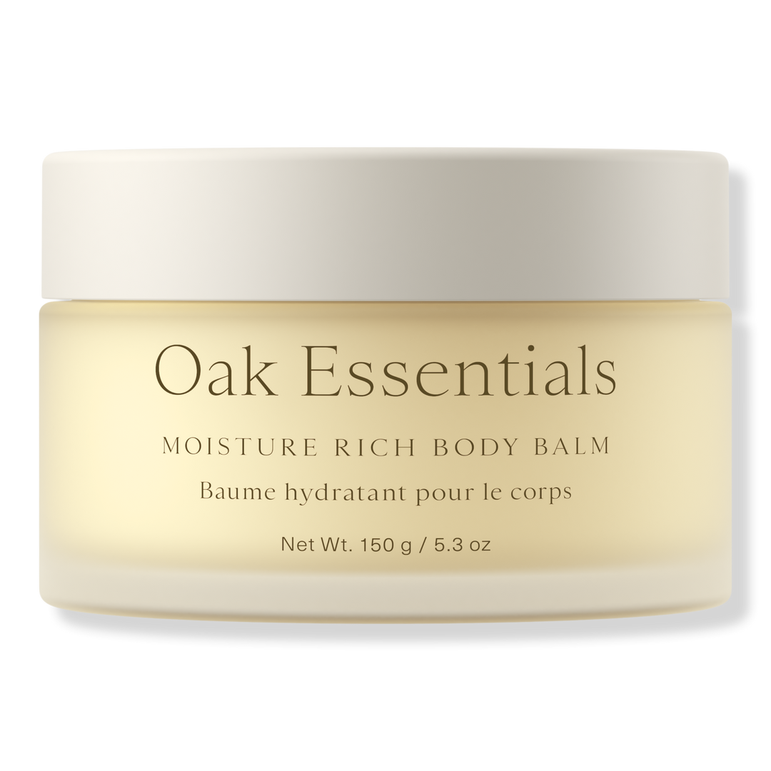 Oak Essentials Moisture Rich Body Balm is an ultra-rich melting balm formulated with skin-softening Cocoa Butter and anti-aging Sea Buckthorn Oil to help protect skin's natural moisture barrier and leave it packed with unmatched hydration.