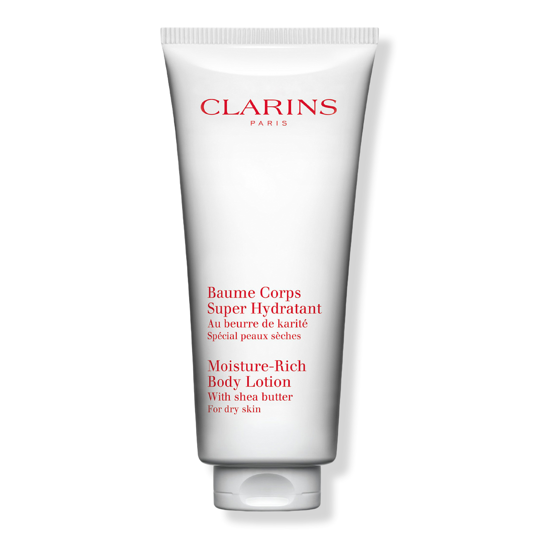 Clarins' ultra-nourishing Moisture-Rich Hydrating Body Lotion soothes rough, dry, tight skin with a comforting cocoon of long-lasting moisture.