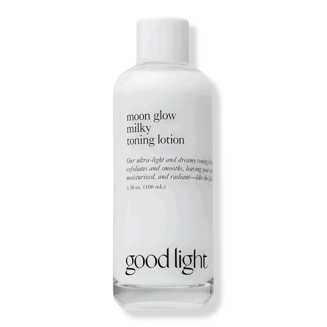 good light's ultra-light Moon Glow Milky Moisturizing Toning Lotion hydrates and gently exfoliates, leaving your skin balanced, moisturized, and radiant - like the full moon.
