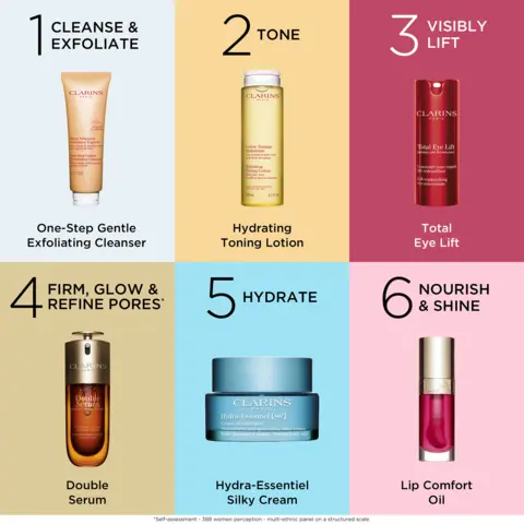 - **Visibly firm, smooth, boost radiance, and refine pores in 7 days - Self-assessment - 388 women perception - multi-ethnic panel on a structured scale, 7 days.