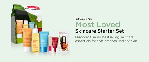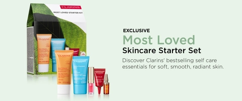 Discover Clarins Most Loved Skincare Starter Set with bestselling self care essentials for soft, smooth, radiant skin, including revolutionary Double Serum.
