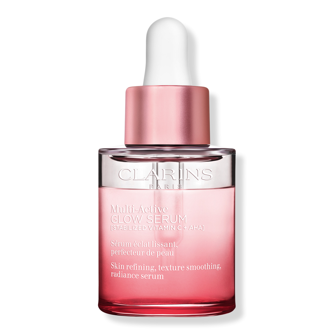 Clarins Multi-Active Brightening Glow Serum is a breakthrough bi-phase serum with Vitamin C + AHA for 3 glow-boosting actions. Instantly brighten, even tone + smooth texture.* Refine pores in 28 days.**