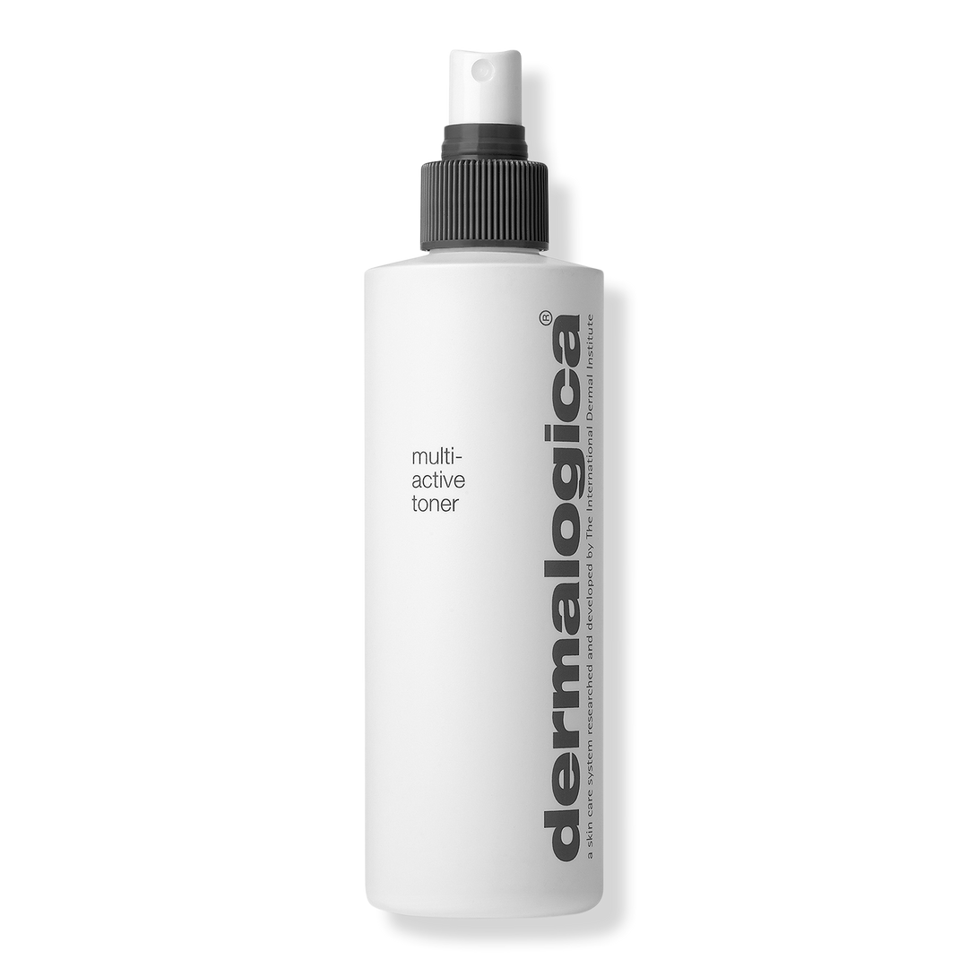 Spritz on critical hydration with Dermalogica's Multi-Active Toner Spray, a refreshing blend of skin-repairing aloe, moisture-binding sodium PCA plus soothing lavender, balm mint and arnica.