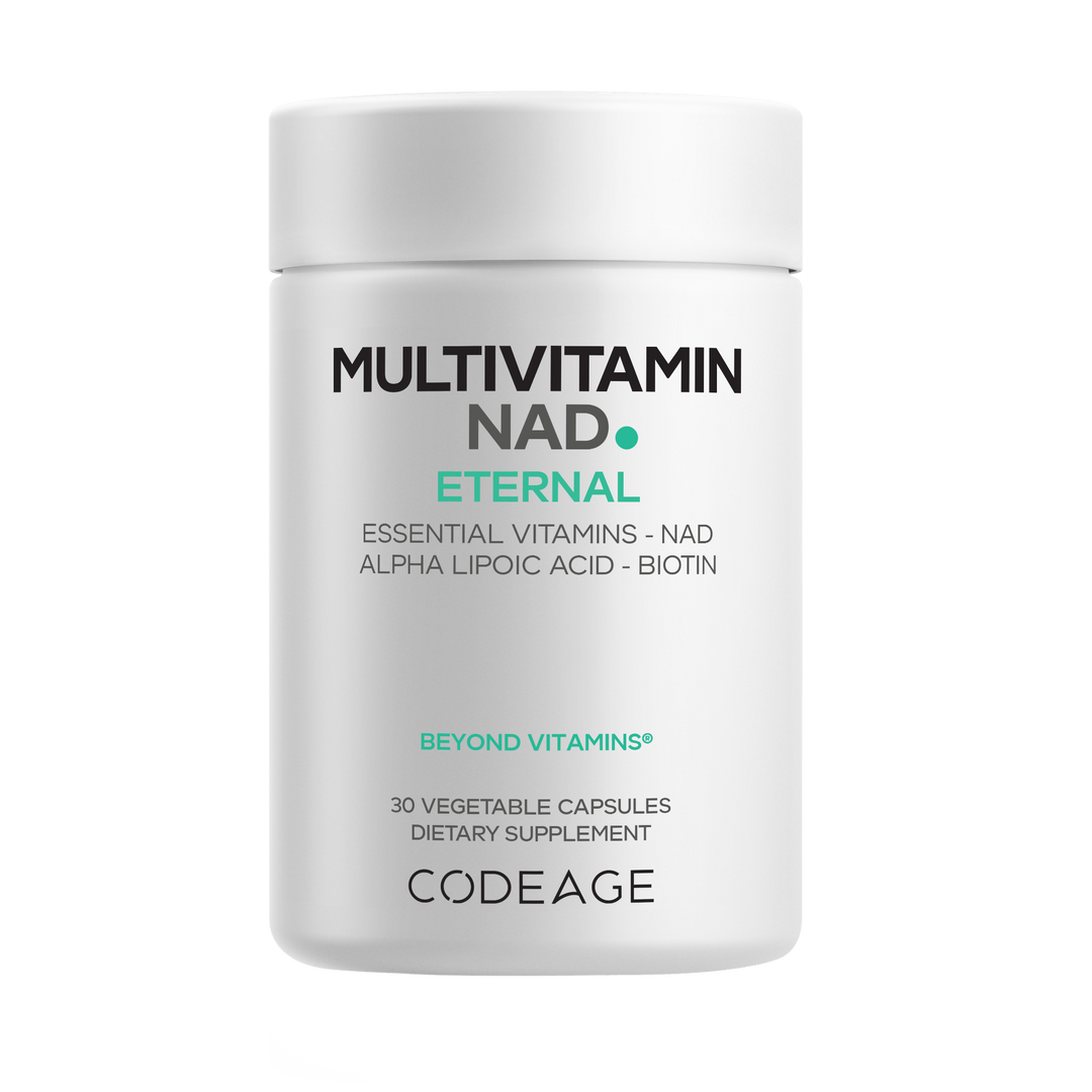 Codeage Multivitamin NAD combines a multivitamin profile—including vitamins A, C, D3, E, K2, and a full spectrum of B vitamins—with NAD+ (Nicotinamide Adenine Dinucleotide). It is designed to support daily nutrient intake and includes ingredients commonly used in wellness routines.