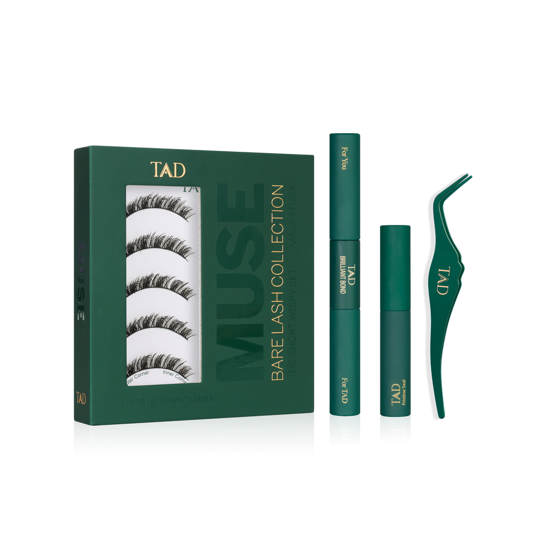 Muse is a short, wispy lash with soft texture, your mascara but better. Stripment Lashes are the easiest DIY system with 3 premapped segments applied underneath for seamless comfort. World's first 3D-printed lashes, made in USA. Includes 5 sets, Bond, Pristine Seal, and DIY Tweezers.