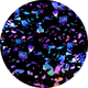 - Scattered reflective pink pigments with flower-shaped glitters in a clear base.