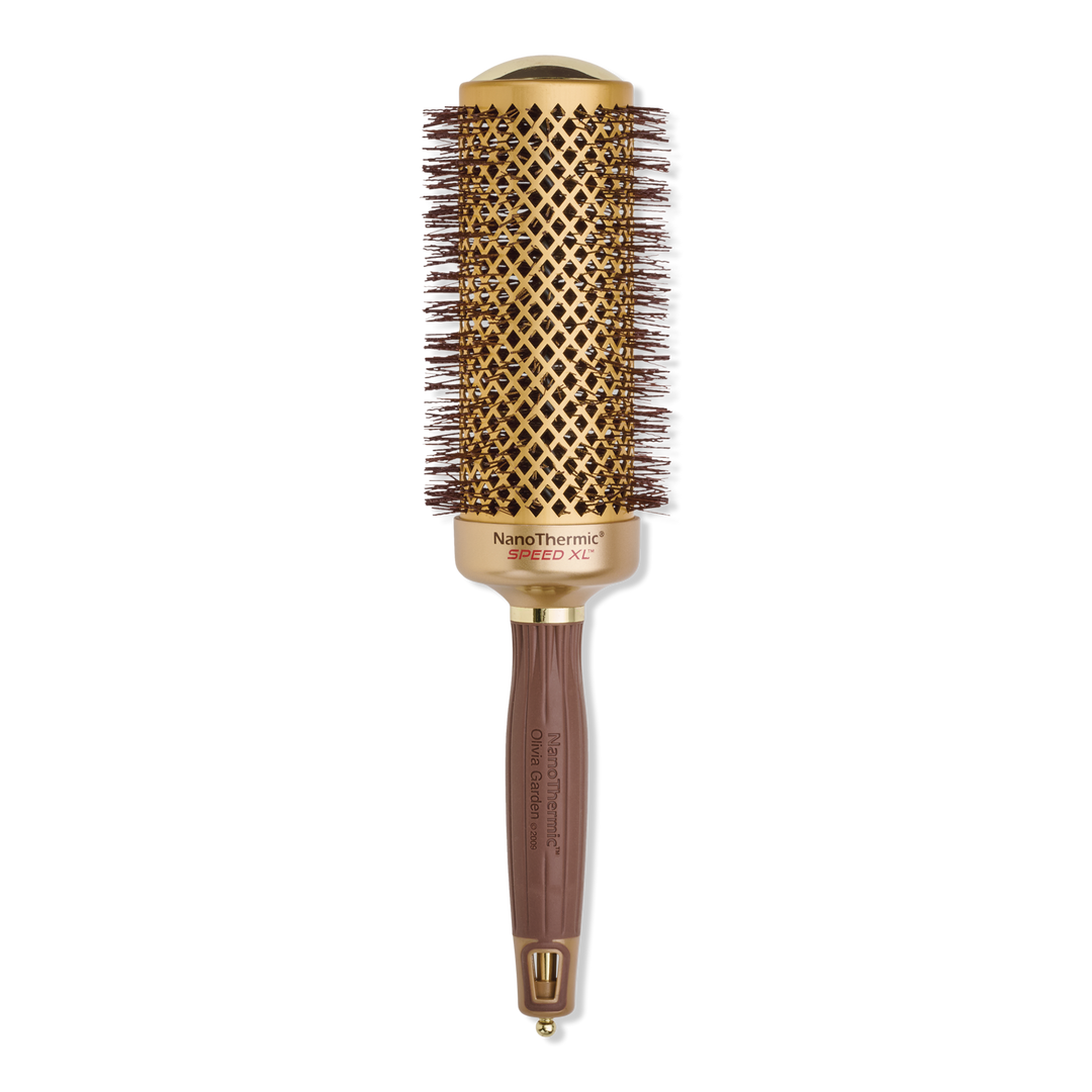 Olivia Garden's NanoThermic Speed XL Round Thermal Brush has an extra long barrel that helps dry and style the hair 25% faster.