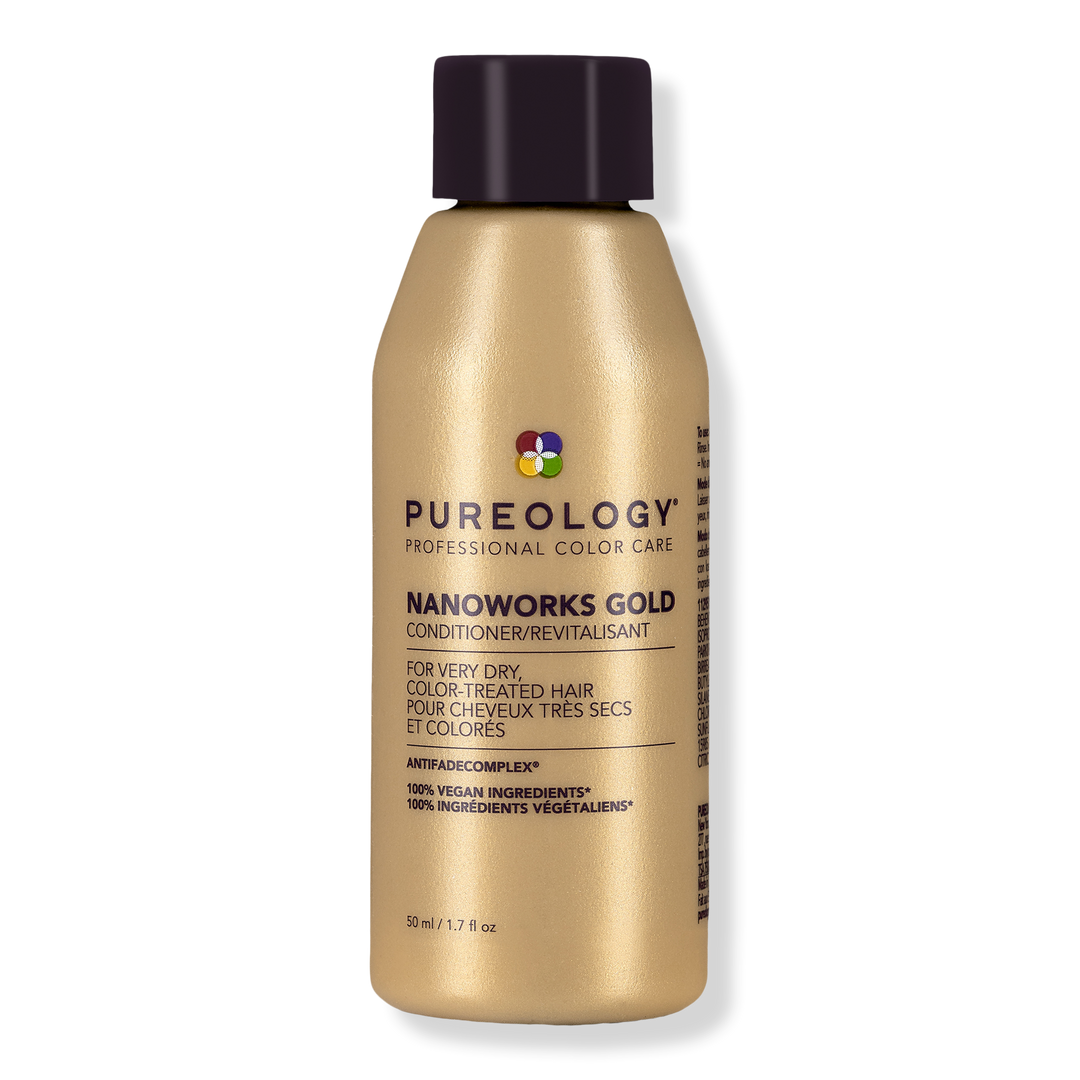Pureology's Nanoworks Gold Conditioner is a creamy, restorative conditioner that strengthens dull, coarse, brittle, or very dry color-treated hair and renews shine.