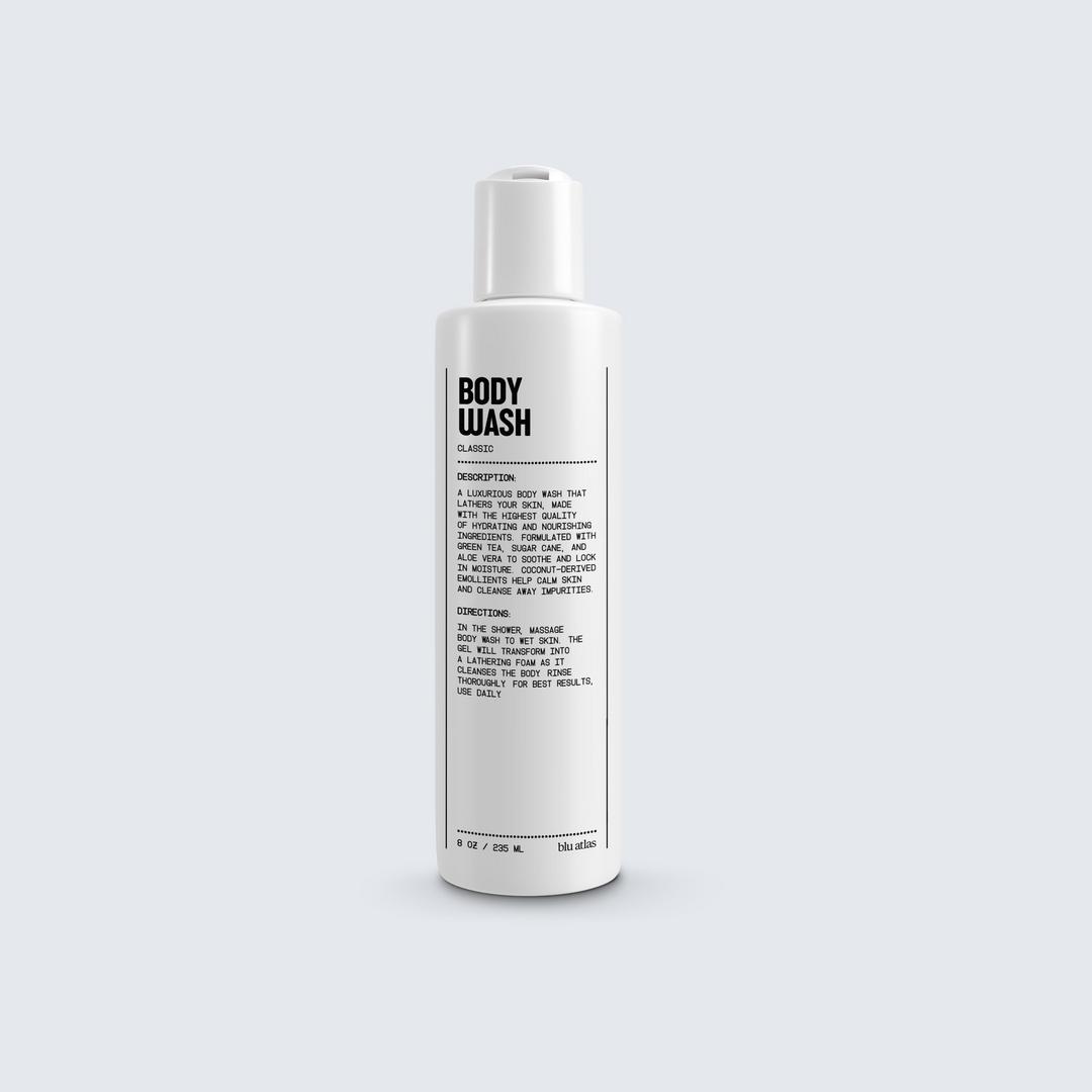 Try the Blu Atlas award-winning Natural Body Wash. This hydrating formula uses green tea, sugarcane, and aloe vera to soothe and lock in moisture, while coconut-derived emollients gently cleanse away impurities for soft, refreshed skin. Suitable for all skin types.