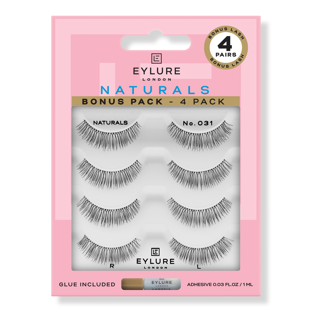 Enhance your gaze with the gorgeously refined Eylure Naturals No. 031 Eyelashes Multipack, the perfect pair for lengthening and defining your lashes without mascara. Every lash pack comes with 18-hour wear latex-free glue and is reusable up to 5 wears.