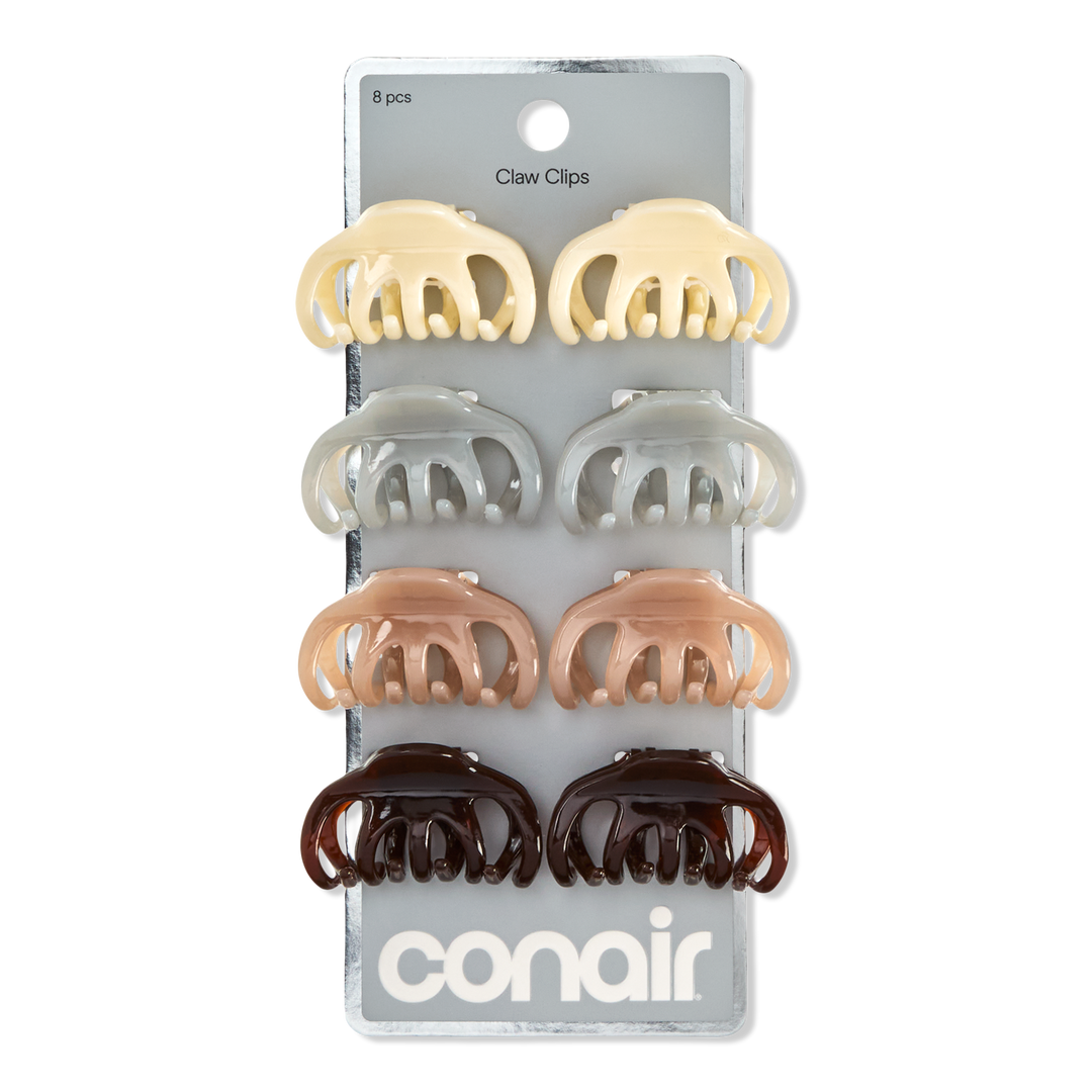 Eight mini clips with major grip. Conair chic brown, gray, light pink, and mauve claws lock small sections in place for effortless all-day hold. Mix, match, and elevate any updo with bold, smart style.