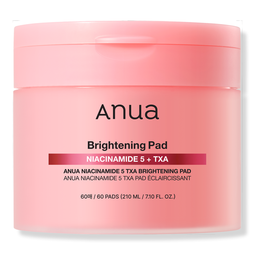 Anua Niacinamide 5 TXA Brightening Pad is a round-shaped pad containing 5% Niacinamide and Tranexamic Acid to help brighten the appearance of skin.