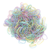 - This jumbo 200 count pack of small, snag free, clear elastics comes in a plastic sleeve for easy storage. The elastics are 2cm in diameter (all same size) and .3cm thickness. They are about the size and thickness of a Nickel.