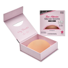 TO USE. . . Peel away from the protective backing on the Non-Adhesive Silicone Inserts. On clean, dry, oil/lotion-free skin, position the Silicone Inserts on your breast and hold into place for a few seconds as body heat will help keep Silicone Inserts in place. If your body naturally runs cool, lightly dampen wet the Silicone Inserts, place on the center of your breast and hold for 10 seconds. Use the contoured backing to place your Silicone Inserts back on and in the velvet pouch for storage and travel.