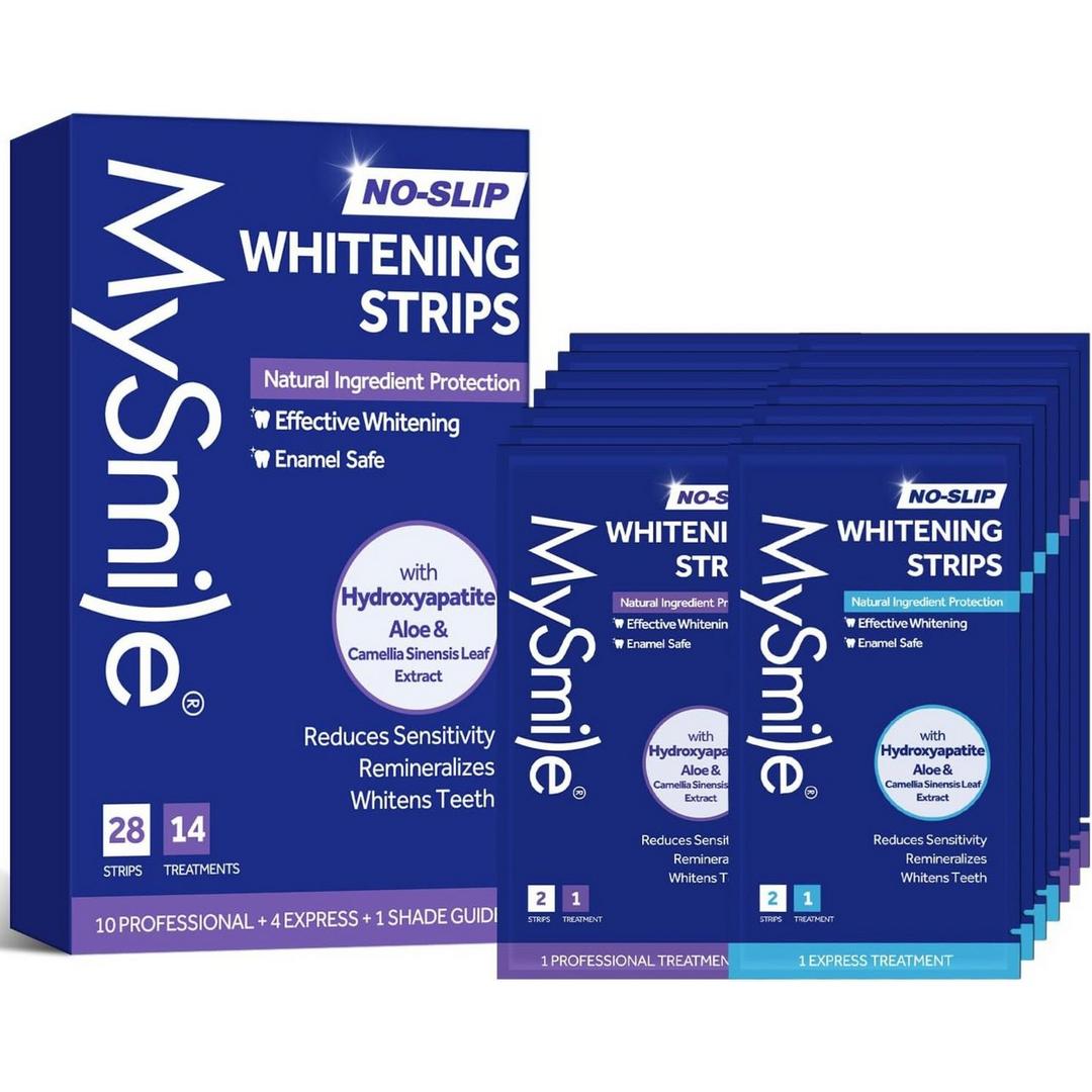 - NO SLIP & NO RESIDUE TEETH WHITENER: These teeth whitening strips are designed with a non-slip adhesive to ensure a secure fit on your teeth, providing an effective whitening experience without worrying about them slipping off. Residue-Free MySmile teeth whitener strips do not leave any residue or debris on your teeth when you remove them.
