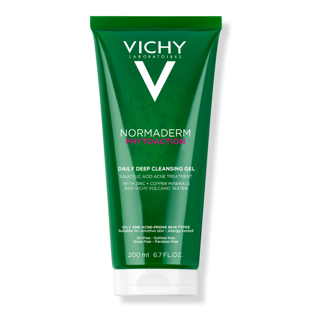 Vichy Normaderm Phytoaction Daily Deep Cleansing Gel with Salicylic Acid removes dirt, oil and impurities while reducing acne blemishes and blackheads. Packaging may vary.